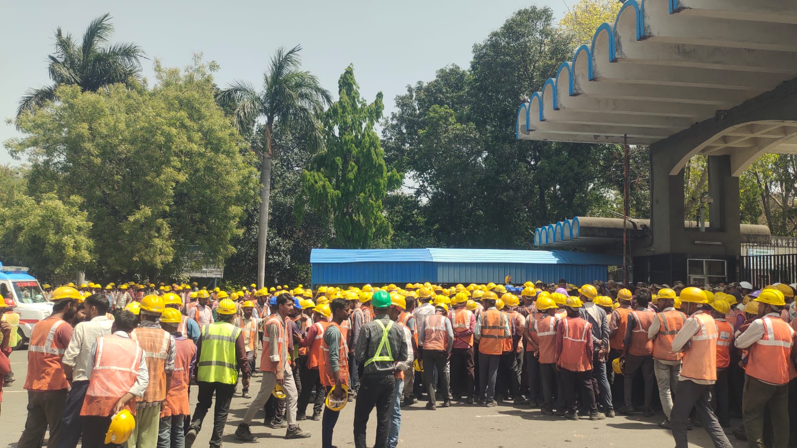 SONBHDRA NEWS: एनटीपीसी रिहंद में मजदूरों का बगावती तेवर 12 घंटे काम, कम वेतन पर भड़का गुस्सा गेट पर श्रमिकों का हुजूम ।