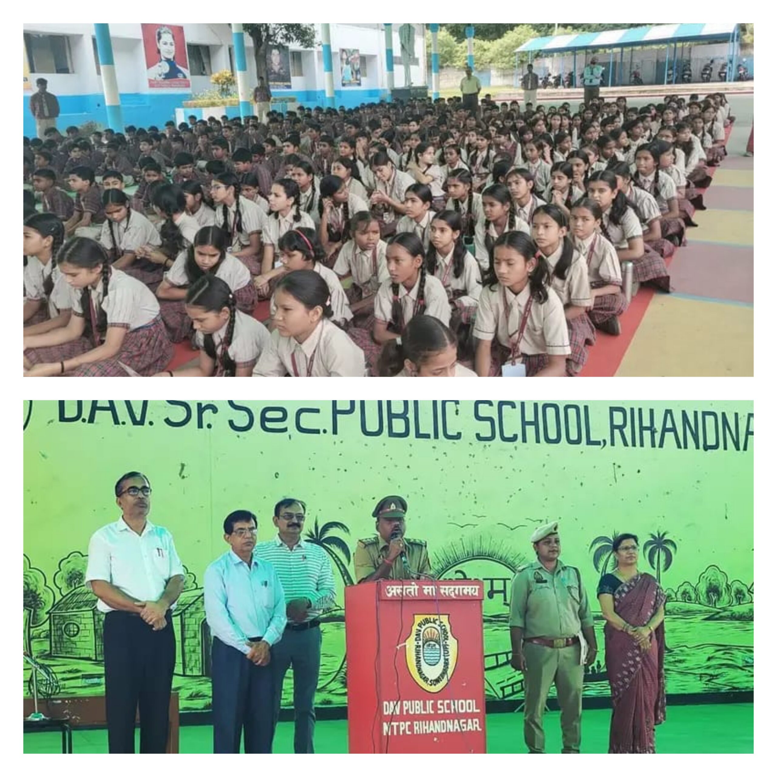 रिंहदनगर एनटीपीसी परिसर में स्थित डीएवी पब्लिक स्कूल में बीजपुर थाना प्रभारी श्री नरेन्द्र कुमार सिंह के नेतृत्व में साइबर सुरक्षा एवं बालिका सशक्तिकरण अभियान के तहत विद्यार्थियों को प्रशिक्षित किया गया। इस अवसर पर सर्वप्रथम विद्यालय के एनसीसी कैडेट्स सूर्य प्रताप सिंह, आदित्य चौधरी, अदालत पाल एवं प्रशांत शाही ने थानाध्यक्ष को सलामी दिया। तत्पश्चात स्काउट ताली के बीच प्राचार्य श्री राजकुमार ने पुष्प गुच्छ भेंट कर थानाध्यक्ष का स्वागत एवं अभिनन्दन किया। थानाध्यक्ष नरेंद्र कुमार सिंह ने अपने उद्बोधन में बताया कि “सशक्त नारी समृद्ध प्रदेश के तहत मिशन शक्ति फेज — 5 जारी है। सरकार महिलाओं के उत्थान एवं बेहतरी के लिए कई योजनाएं चला रही है। वृद्धा पेंशन योजना, मुख्यमंत्री कन्या सुमंगला योजना, मुद्रा योजना, उज्ज्वला योजना,बेटी बचाओ- बेटी पढ़ाओ आदि महत्वपूर्ण योजनाएं हैं।